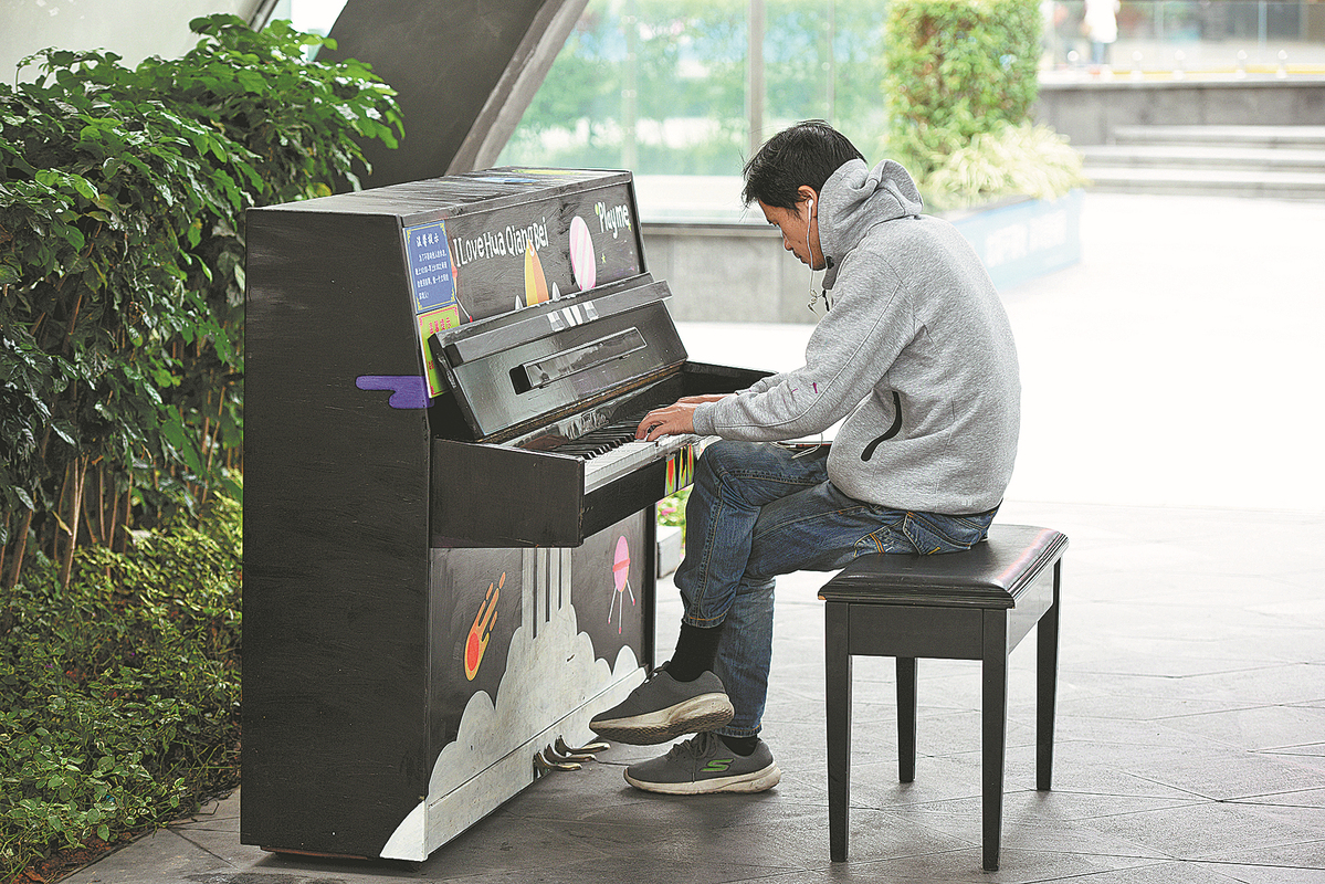 Zhang Chen, deputy director of the Huaqiangbei subdistrict office, said: "Huaqiangbei is located in the commercial district in the center of Shenzhen. We have been trying to provide diverse facilities to bring high-quality public cultural services to the area. We are surprised that the public piano project has attracted so many people to play the instruments, and others to watch them perform."
