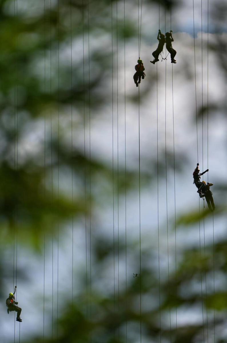 On Friday, the competitors worked in pairs to compete in a rope-climbing competition. They climbed a rope hung from a nearly 100-meter bridge. Over two days, nine simulated rescue missions for city skyscrapers and in the wild were carried out.