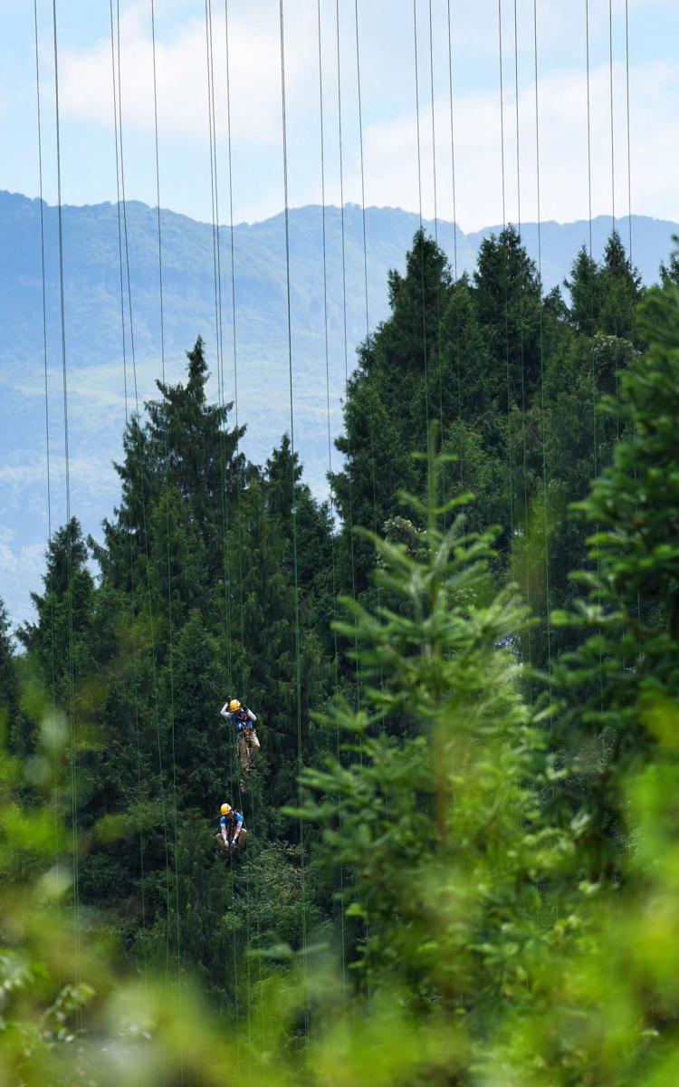 More than 20 professional rescue teams comprising firefighters and rope rescue experts from Belgium, Japan and across China competed in the 2023 Jinfo Mountain LifeLine International Rope Rescue Invitational Tournament, held in Chongqing's Nanchuan district on Friday. [Photo by Luo Jia/For chinadaily.com.cn]