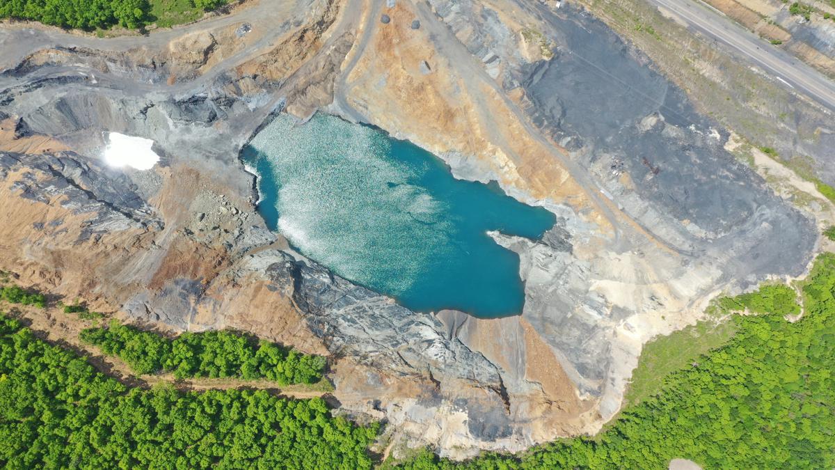 An aerial photo shows the appearance of the abandoned open-pit coal mine in Baoqing county of Shuangyashan city, Heilongjiang province before the ecological rehabilitation project. [Photo provided to chinadaily.com.cn]