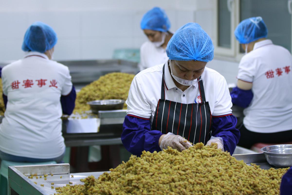 Workers sort raisins at a processing plant in the Gaochang district of Turpan, Xinjiang Uygur autonomous region, on Thursday. [Photo by Zhu Lixin/chinadaily.com.cn]