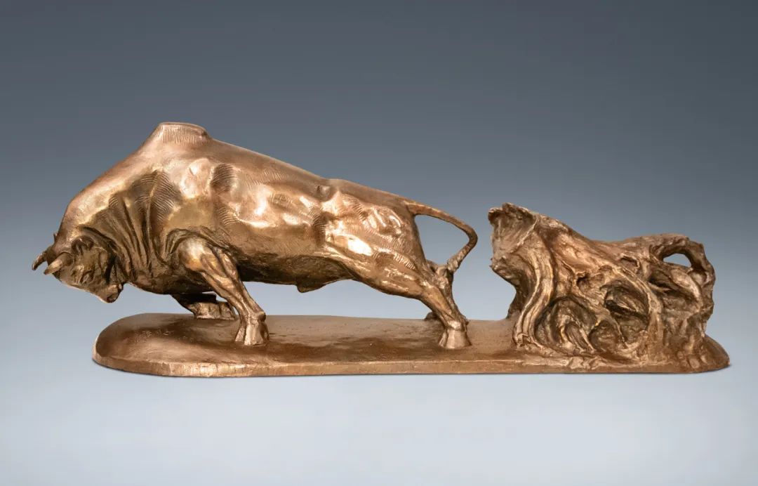 A copper sculpture of a hard-working bull, created by Pan He, 1983 [Photo/Official WeChat account of the Guangdong Museum of Art]
