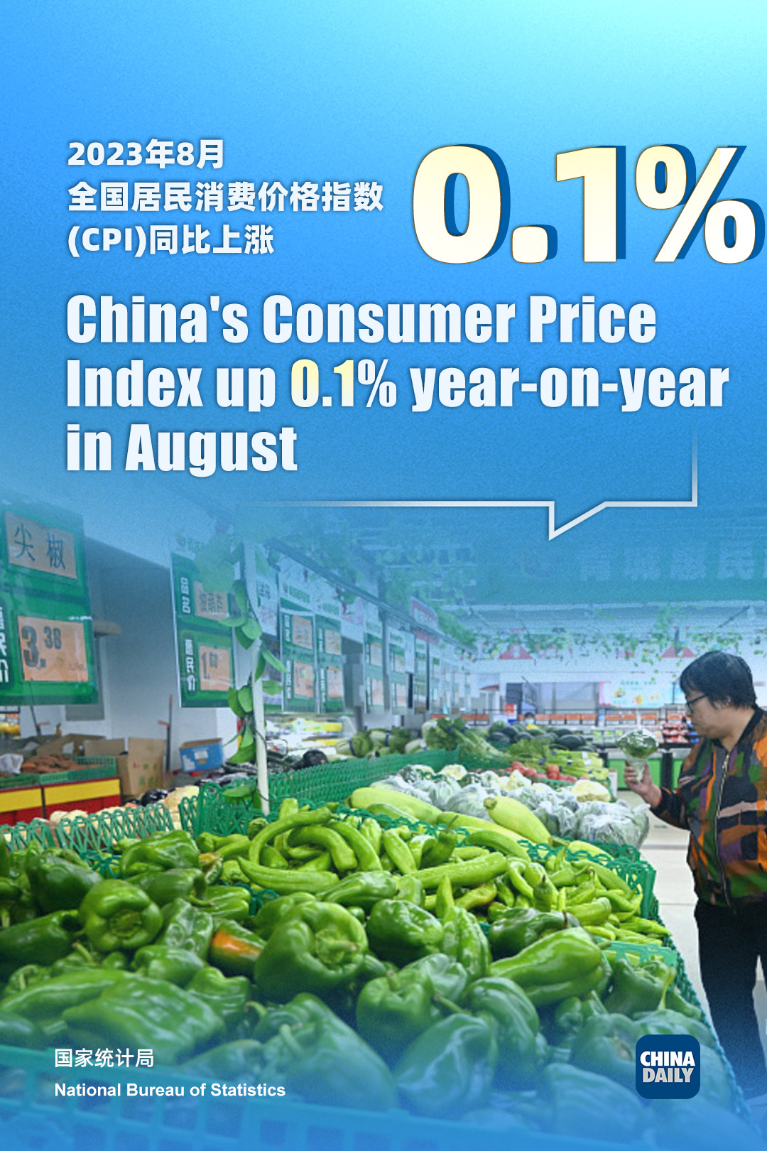 China's consumer price index, a main gauge of inflation, rose by 0.1 percent year-on-year in August, up from a 0.3 percent decline in July, according to data released by the National Bureau of Statistics.