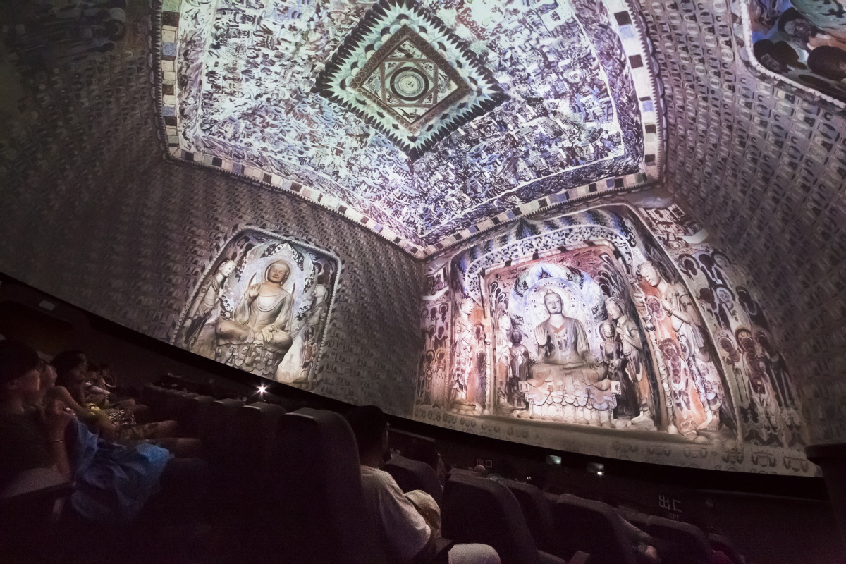 Visitors watch a full-dome digital film at the digital center in Dunhuang, Gansu province. [Photo provided by Dunhuang Academy]