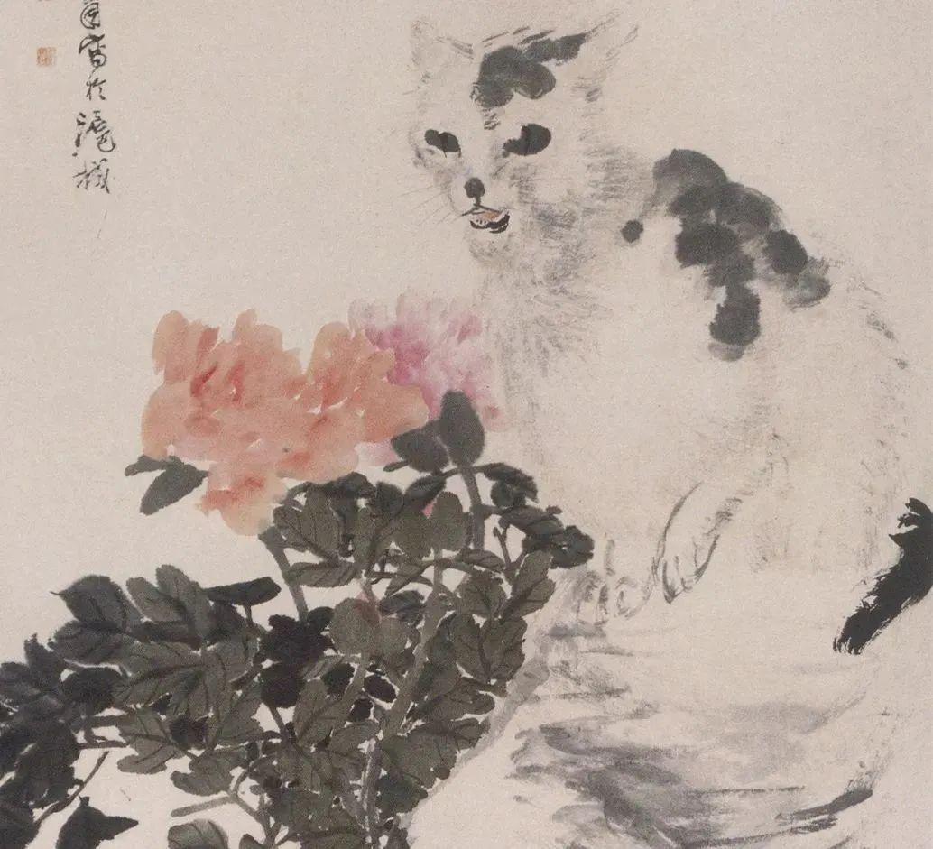 Detail of a scroll painting depicting peony flowers and a cat, from the collection of the Tsinghua University Art Museum [Photo/Official WeChat account of the Shaoxing Museum]