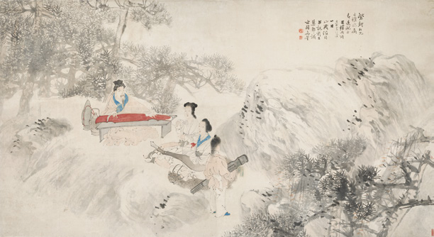 A painting depicting people playing string and wind musical instruments in a mountain, from the collection of the Nantong Museum [Photo/Official WeChat account of the Shaoxing Museum]