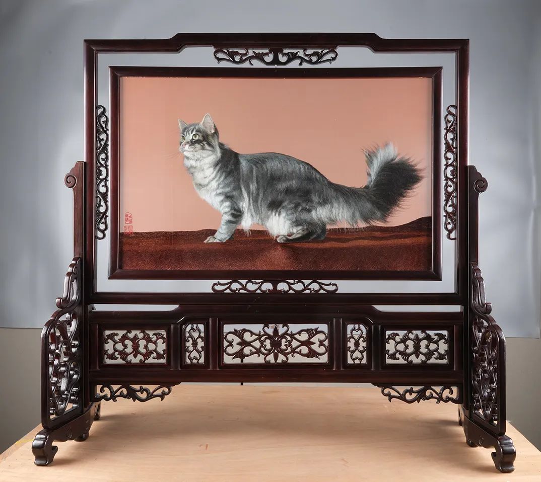 Hangzhou double-sided embroidery depicting a cat [Photo/Official WeChat account of the Zhejiang Provincial Museum]
