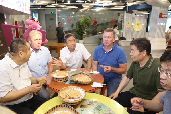 During the visit, the Rokashi GmbH delegation toured the Zhoucun Shaobing Museum and discussed food processing, sales, and distribution.