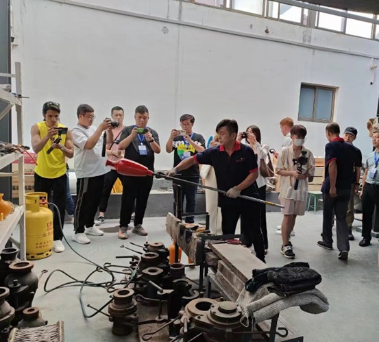 A delegation of 11 international students from countries such as Angola, Georgia, Indonesia, South Korea, Pakistan, the Philippines, and the United Kingdom delved into Boshan district's "chicken fat" yellow glass art in Zibo city, Shandong province, on Sept 5.
