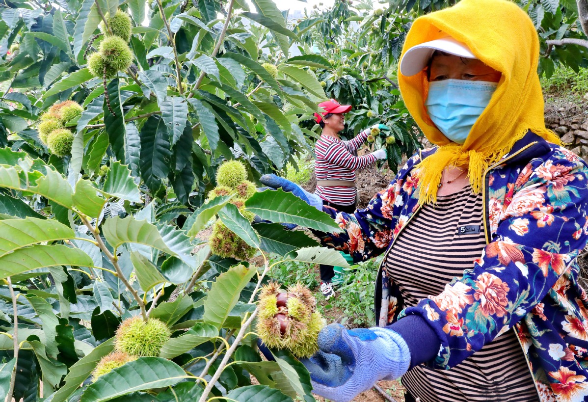 So far, the cooperative has signed contracts with over 800 chestnut-growing households. Each year, it purchases 2,000 to 3,000 metric tons of chestnuts from them, said Li, adding that, before the COVID-19 pandemic, they were selling to customers in countries including Japan, Singapore and Israel.
