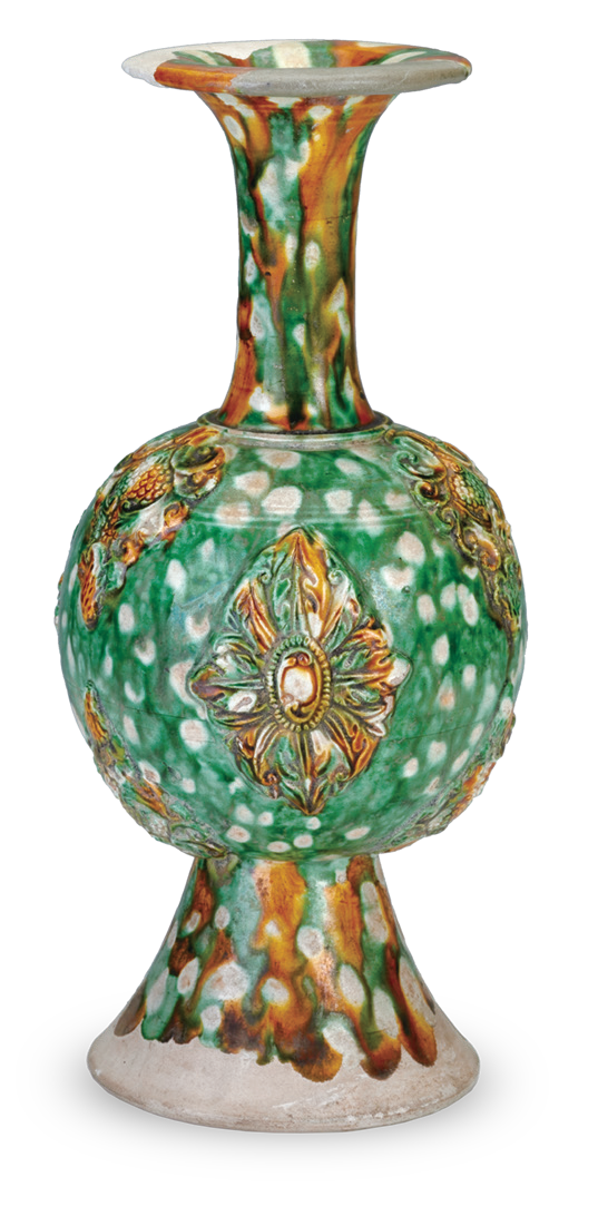 pottery vase adorned with stamped flower patterns in appliqué, Tang Dynasty (618-907) [Photo/Official WeChat account of the Shanxi Museum]