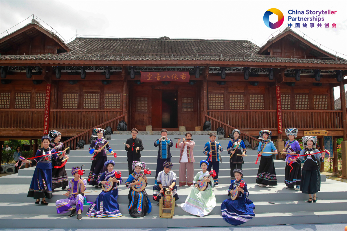 Performers present Bayin Zuochang, a Bouyei ethnic band performance in which members playing eight different instruments while singing at Wanfenglin scenic spot in Xingyi city of Qianxi’nan Bouyei and Miao autonomous prefecture, September 14, 2023. [Photo provided to chinadaily.com.cn]