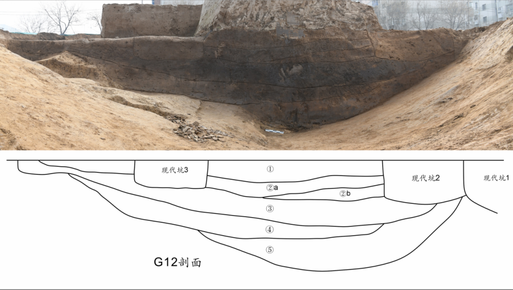 Section diagram of the ditch of the water system remnants at the Shangcheng site in Zhengzhou [Photo/Henan Provincial Institute of Cultural Heritage and Archaeology]