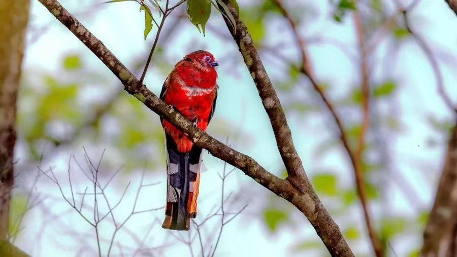 The reproduction period of red-headed trogos is from April to July. They build nests in tree holes in deep forests. Females will lay three to four eggs, experts said.