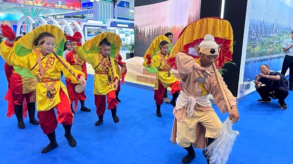 Jiyang drum yangko, a traditional folk dance from Shandong province, is staged in the Jinan exhibition area at the fourth CICTF. [Photo provided to english.jinan.gov.cn]