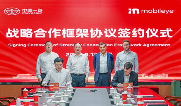 Automotive giant China FAW Group and Israel-headquartered autonomous driving and driver-assistance tech company Mobileye signed a strategic cooperation memorandum on Sept 13 in Changchun, capital of Northeast China's Jilin province.