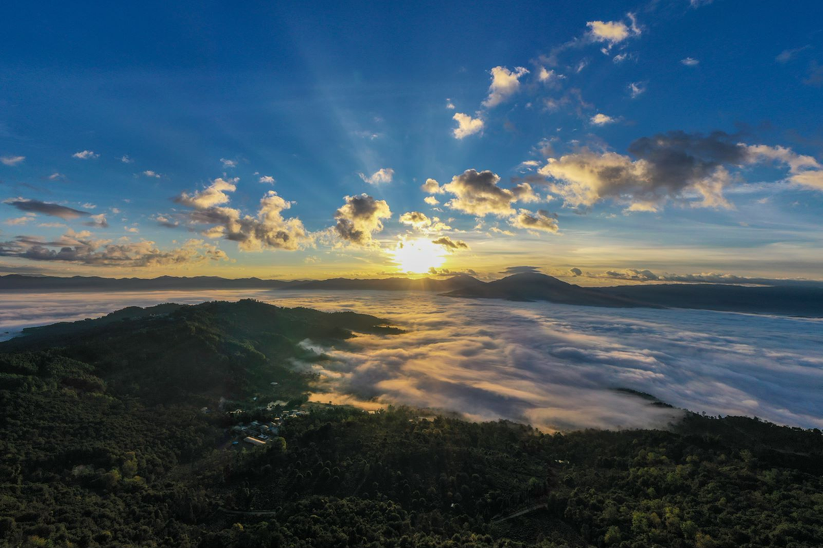 Villages are surrounded by old tea forests and a cloud sea on Jingmai Mountain. [Photo by Shao Hongyan/For China Daily]