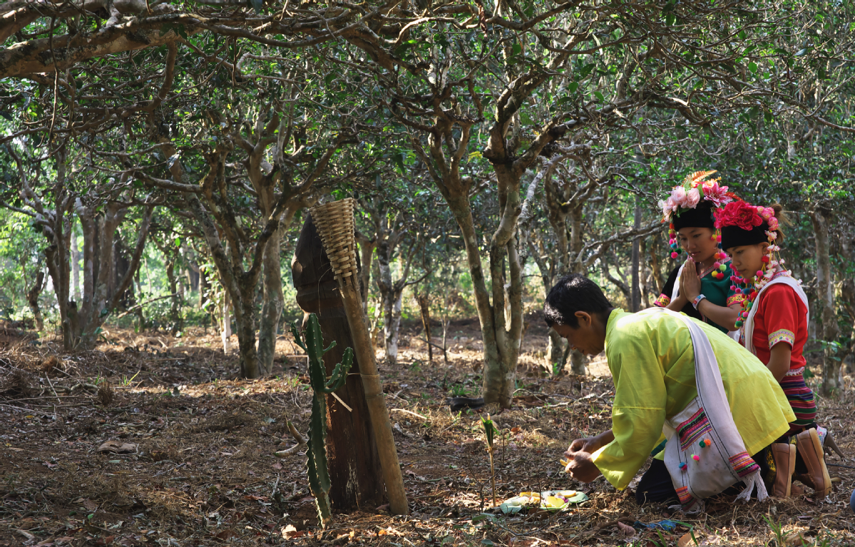 Blang people on Jingmai Mountain worship a Tea Spirit Tree. [Photo by Tan Jianguo/For China Daily]