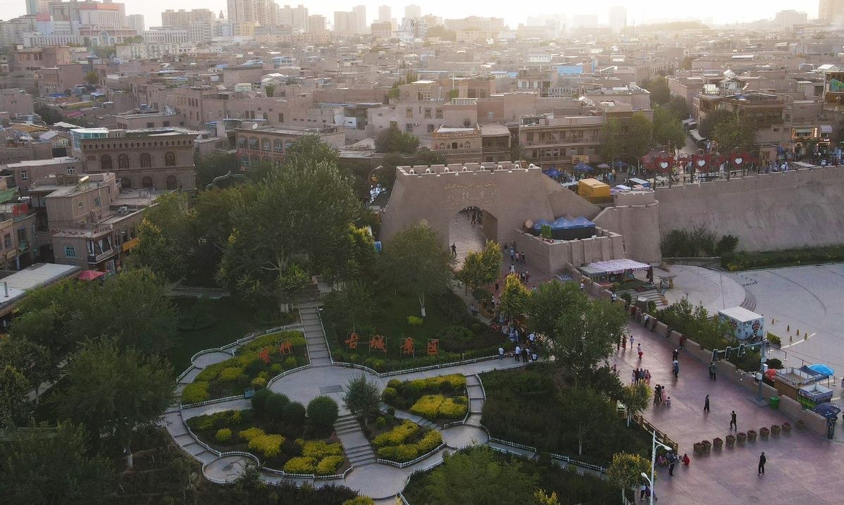 This aerial photo taken on Sept 7, 2023 shows the ancient city of Kashgar scenic area in Kashgar, Northwest China's Xinjiang Uygur autonomous region. [Photo/Xinhua]