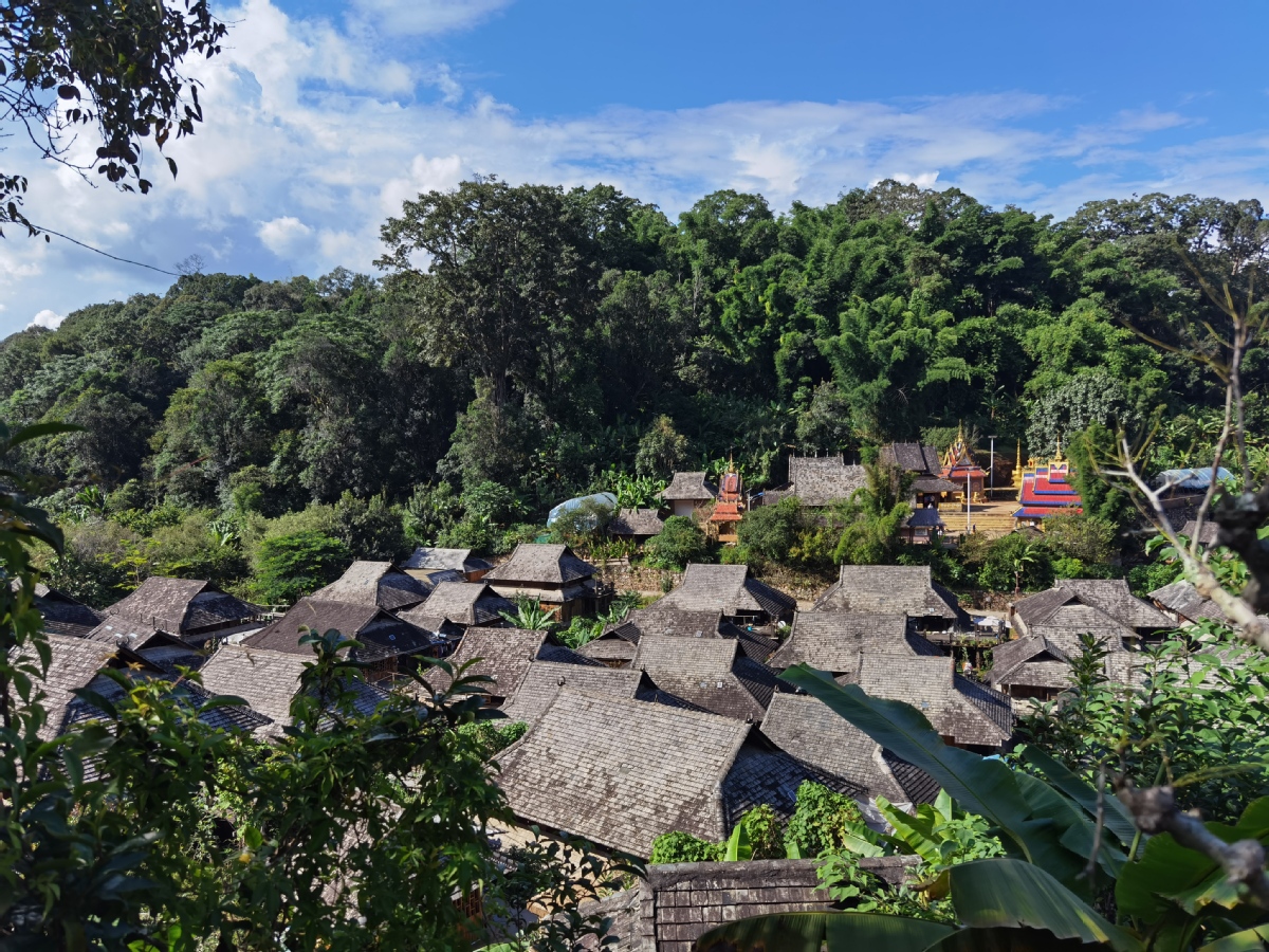 Nuogan, a village mainly inhabited by Dai ethnic group, in the heart of the old tea forests on Jingmai Mountain. [Photo by Wang Kaihao/China Daily]
