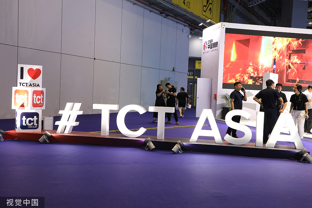 Logo of the 2023 TCT Asia exhibition for 3D printing and addictive manufacturing intelligence is seen in National Exhibition and Convention Center, Shanghai, Sept 12, 2023. [Photo/VCG]