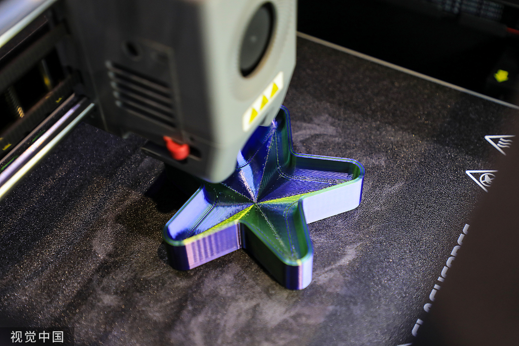 A 3D printer prints a star-shaped product at the 2023 TCT Asia in Shanghai, Sept 12, 2023. [Photo/VCG]