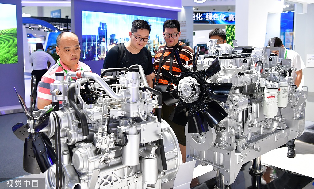 Engines are exhibited at the 2023 World Manufacturing Convention in Hefei, Anhui province, Sept 20, 2023. [Photo/VCG]