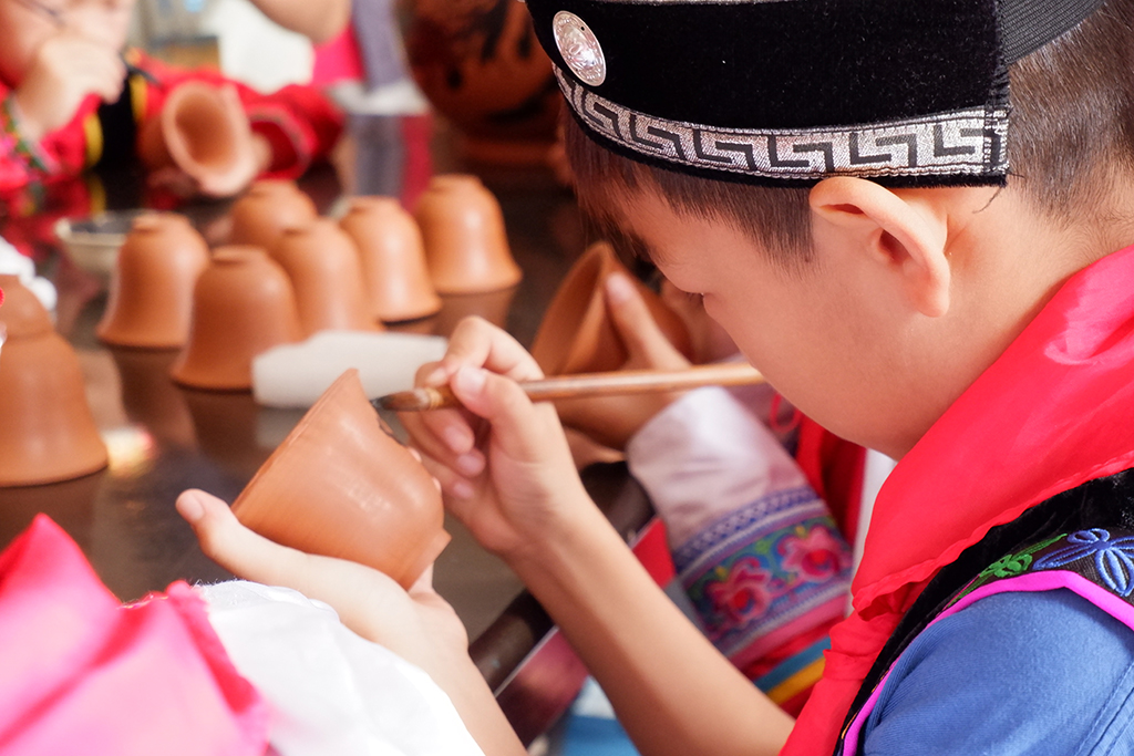 A kid learns ceramic crafts at the Yunnan Nationalities Museum. [Photo provided to chinaservicesinfo.com]