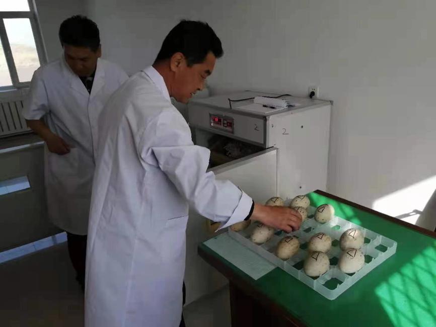 A breeder checks red-crowned crane eggs at the Liaoning Crane Breeding Base in Panjin, Liaoning province. [Photo provided to chinadaily.com.cn]