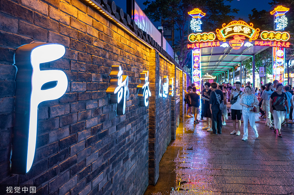 People walk on a food street in Wuhan, Hubei province, July 2, 2023. [Photo/VCG]