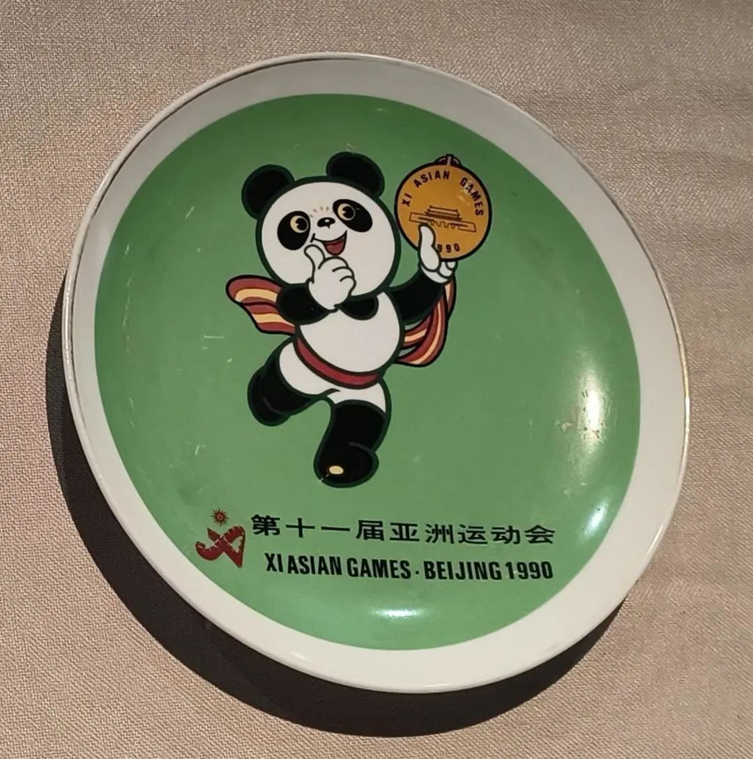 An enamel plate decorated with the mascot of the 11th Asian Games [Photo/Official WeChat account of China Museum of Southern Water Town Culture]
