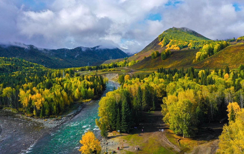 Hemu village in Xinjiang has unveiled its breathtaking autumn charm. The landscape, with its colorful forests, wooden houses against the backdrop of snow-capped peaks, and clear blue sky with white clouds, truly resembles a mesmerizing ink painting.