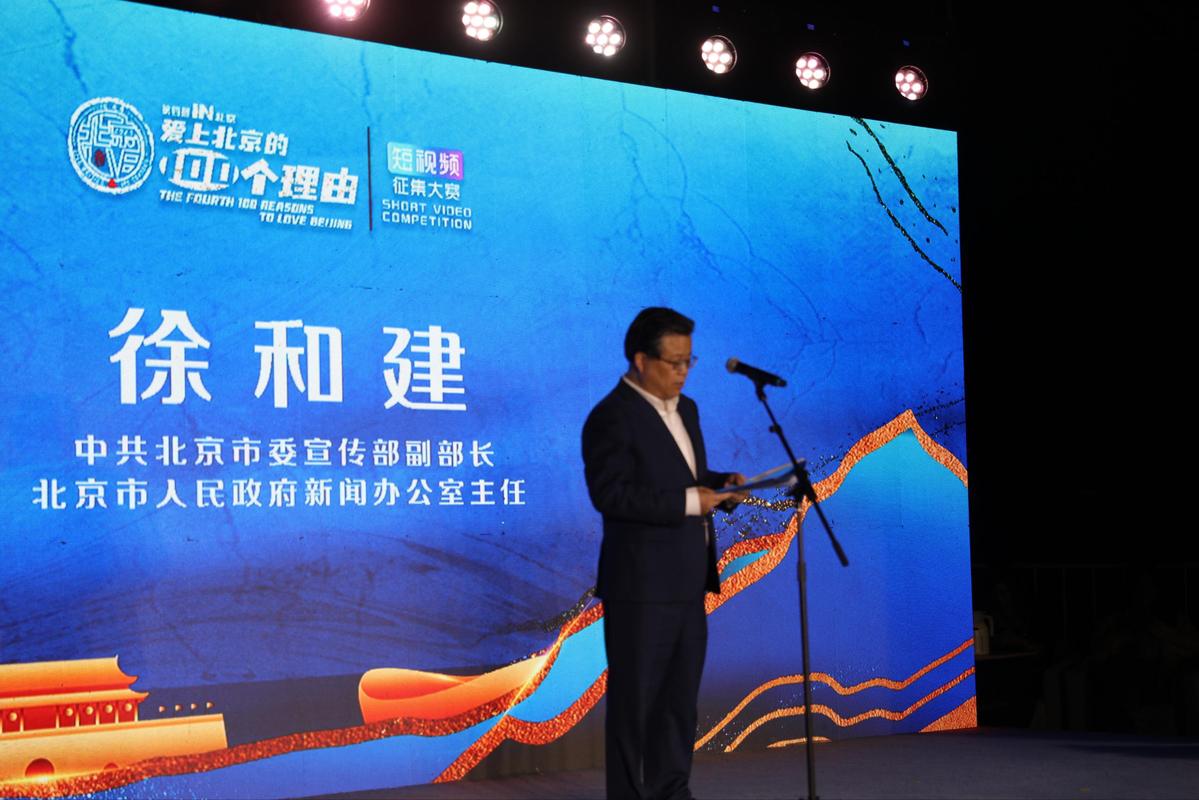 Xu Hejian, director of the Information Office of Beijing Municipality makes an address at the launching ceremony of the 4th "100 Reasons to Love Beijing" short-video contest in Beijing on Sept 27, 2023. [Photo provided to chinadaily.com.cn]