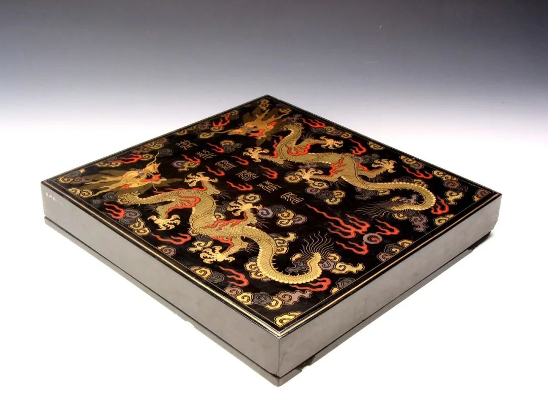 A black-lacquered ink stone box with gold dragon patterns [Photo/Official WeChat account of the Shenyang Palace Museum]