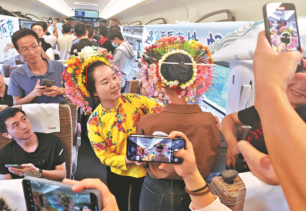 Liang Po-hsiang, a passenger from Taiwan, said the service is faster than other bullet trains and pays great attention to details. Each seat has a USB interface to charge a phone, which is "quite convenient", he said.