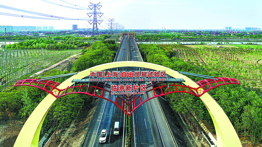 An entrance to the Lingang Special Area of the China (Shanghai) Pilot Free Trade Zone. [CHEN ZHIQIANG/FOR CHINA DAILY]