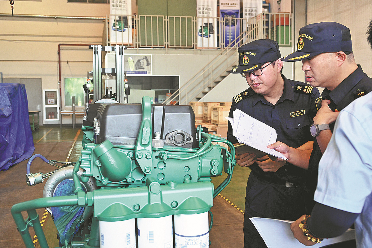 A remanufactured engine for an articulated truck imported by Volvo Construction Equipment (China) arrived in Pudong New Area of Shanghai and completed declaration procedures at customs this month. [Photo provided to China Daily]