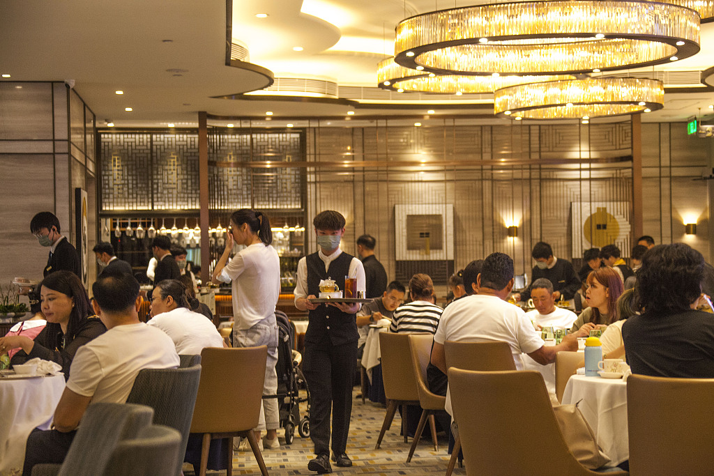 Customers dine in a restaurant in Nanjing, Jiangsu province, on Oct 2, 2023. [Photo/VCG]