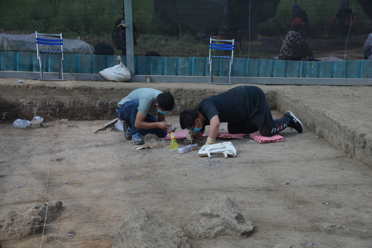 Archaeologists work on the Dadong site. [Photo provided to China Daily]