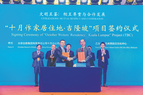 The signing between the October Branch of the Beijing Publishing Group and the Malaysia Han Culture Centre was part of the 2023 Beijing Culture Forum held on Sept 14 and 15, which was organized by the Publicity Department of the Communist Party of China Central Committee, the CPC Beijing Municipal Committee and the Beijing municipal government.