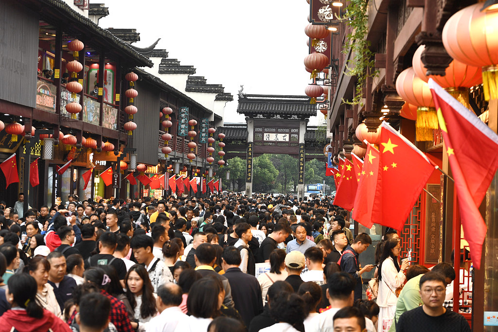 Tourism-related revenue also surged, totaling about 753.4 billion yuan ($103 billion) over the eight days, a year-on-year increase of 129.5 percent and a 1.5 percent growth compared to 2019 numbers.