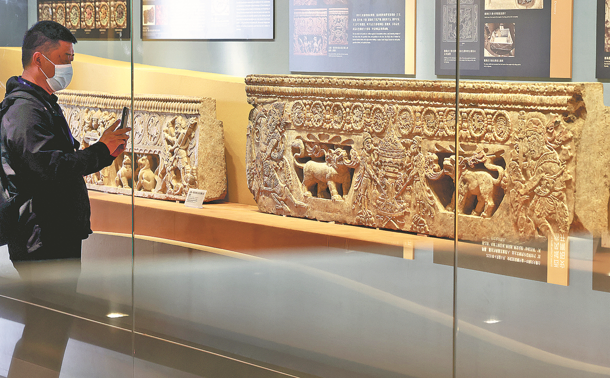Two exquisite panels of Chinese stone funeral beds, which were believed to be between the 4th and 7th century, also made their debut for public exhibition. Once lost overseas, they were repatriated from the United States in May, demonstrating close China-US cooperation in cracking cultural relic-related crimes.