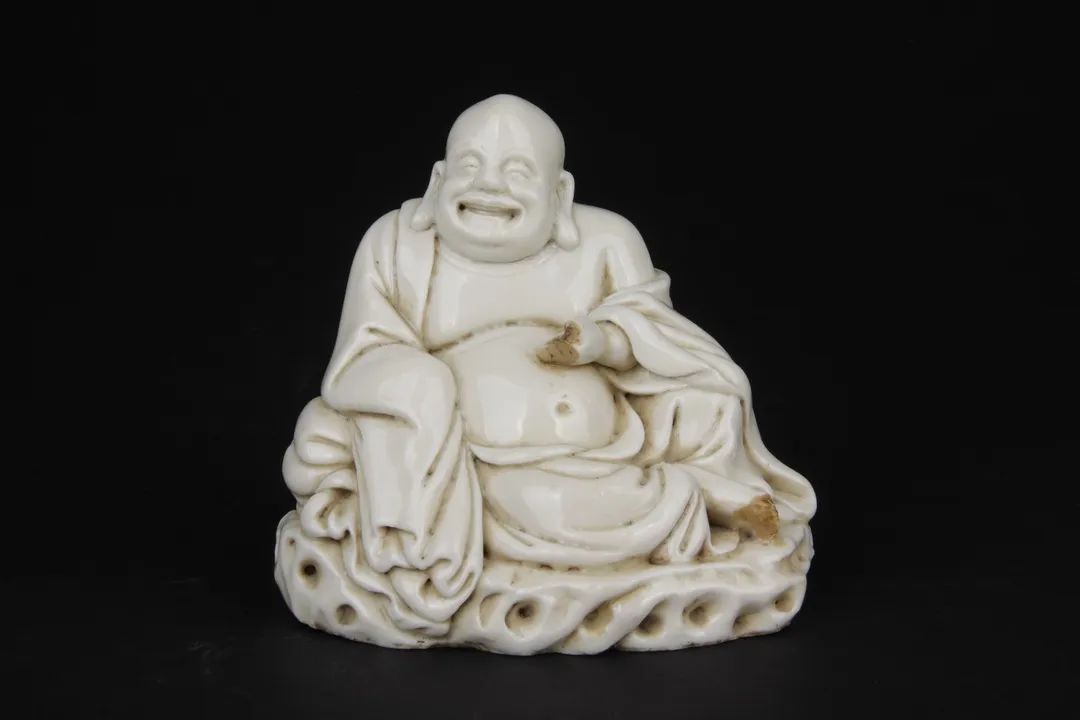 A white-glazed seated Maitreya statue, Dehua ware, Ming Dynasty [Photo/Official WeChat account of the Tianjin Museum]