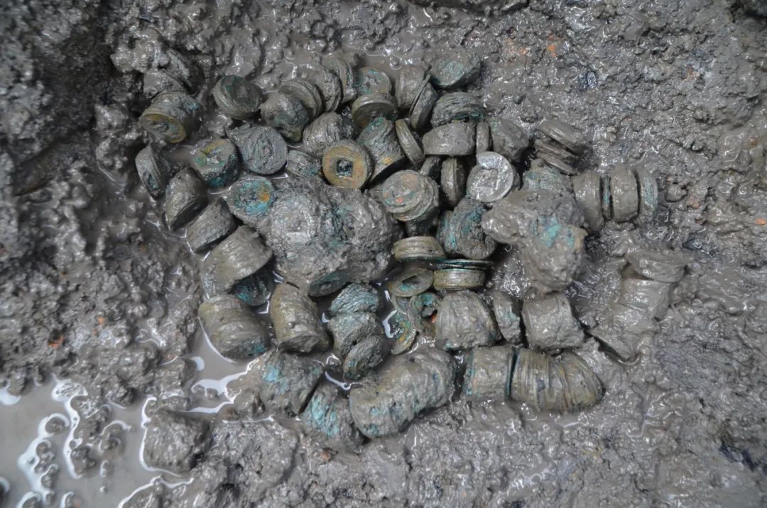 Copper coins are excavated from the site. [Photo/Official WeChat account of Ningbo Municipal Bureau of Culture, Radio Television and Tourism]