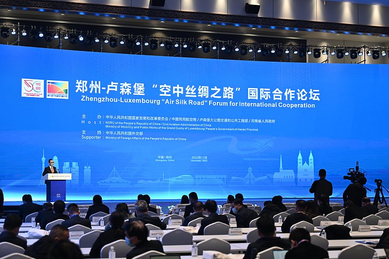 People attend Zhengzhou-Luxembourg "Air Silk Road" Forum for International Cooperation in Zhengzhou, Henan province on Nov 16, 2022. [Photo/VCG]