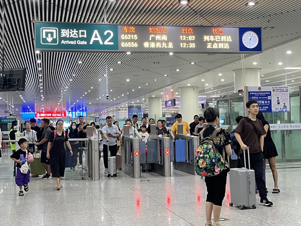 Passengers arrive at Futian Station in Shenzhen. [Photo provided to chinadaily.com.cn]