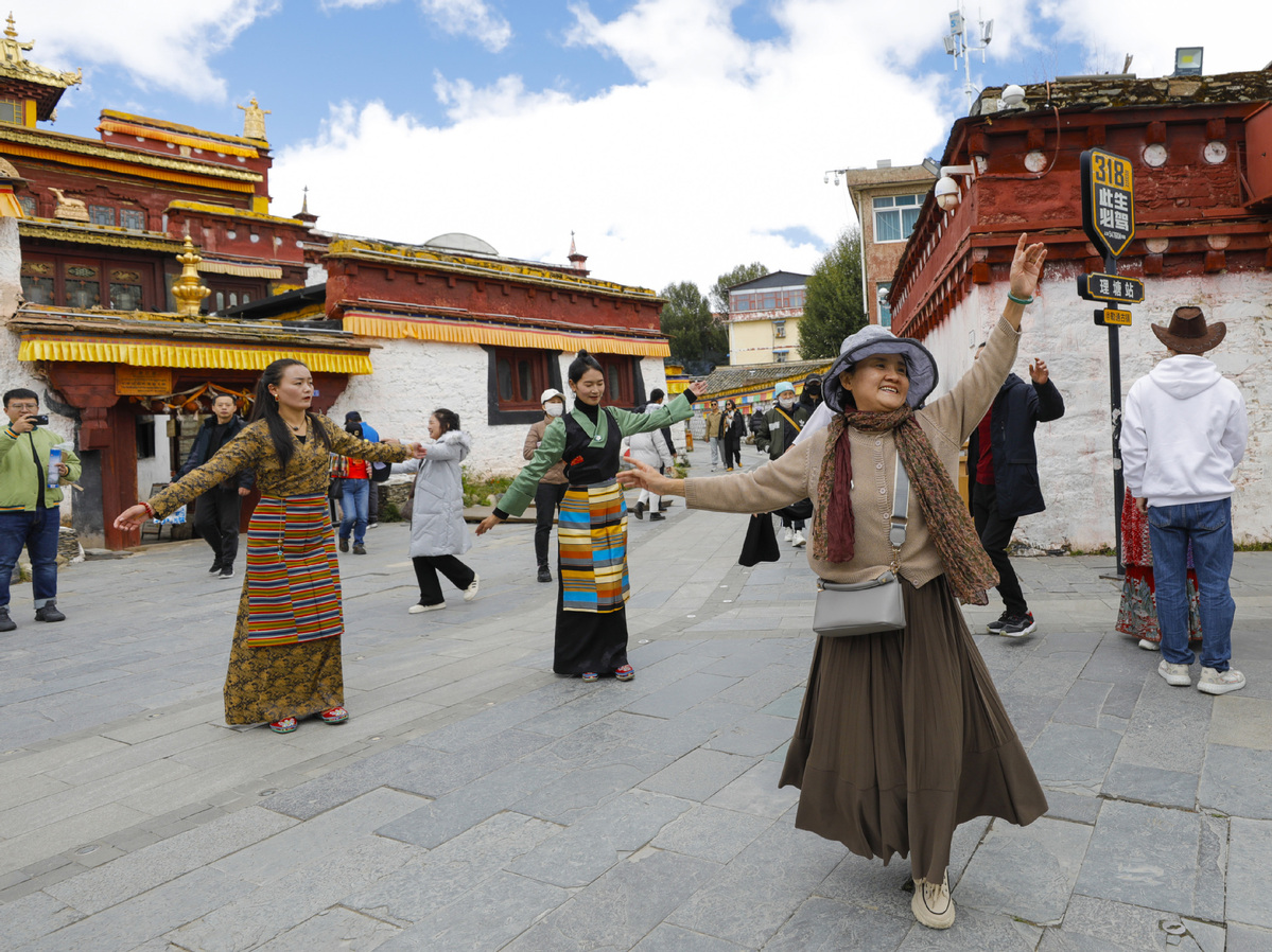 In recent years, Litang county of Garze Tibetan autonomous prefecture, Sichuan province, has strengthened the protection of Tibetan culture, encouraging local residents to develop innovative Tibetan cultural tourism projects and providing subsidies to intangible cultural heritage workshops that meet the criteria for application. These efforts have successfully attracted visitors from all around the world to come and explore and engage with this rich cultural experience. Since the beginning of this year, Litang county has received about 2.35 million tourists, and the tourism industry’s income is 2.584 billion yuan ($3.55 million).[Photo/Xinhua]