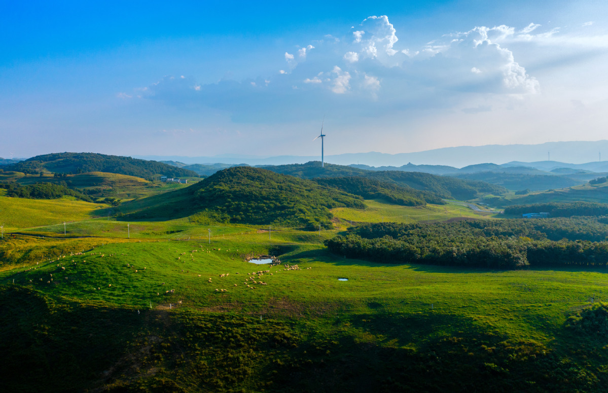 An aerial view of the vast Zhuofu Grassland in Weining county, Bijie city, Southwest China's Guizhou province. [Photo by Li Jingcheng /Provided to chinadaily.com.cn]