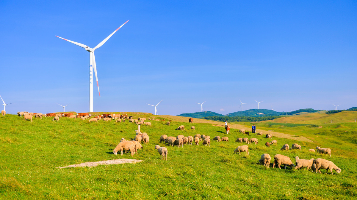 Herds of cattle and sheep leisurely eat grass in the boundless green grassland. [Photo by Li Jingcheng /Provided to chinadaily.com.cn]
