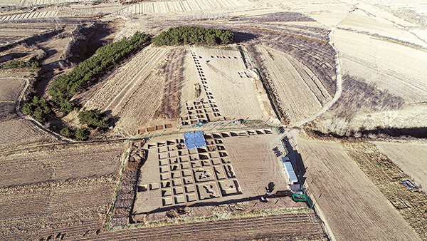 A bird's-eye view of the excavation area at the site between 2021 and 2022. [Photo provided to China Daily]